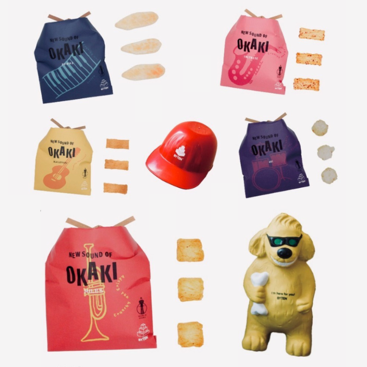 | 大阪・桜川発ブランド「BYTEN」 “関西のジャズ文化×日本の伝統菓子”を融合した〈JAZZ OKAKI〉は、国産もち米使用で軽やかで香ばしい味わい。限定フレーバーやギフトBOXなどのラインナップを販売。 |