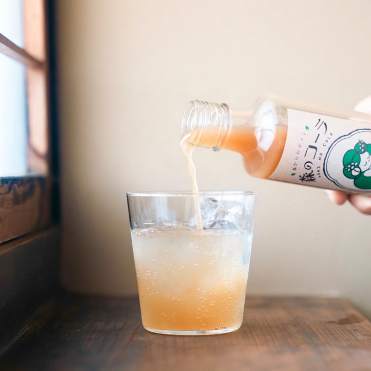 | 「森をまもりたい」という想いから 原材料はアグロフォレストリー(森林再生農法)で育てた香辛料。 兵庫県で作られたゆず果汁、甘酒を活用し、 森のコーラを飲めば飲むほど、森が増える取り組み中。 |